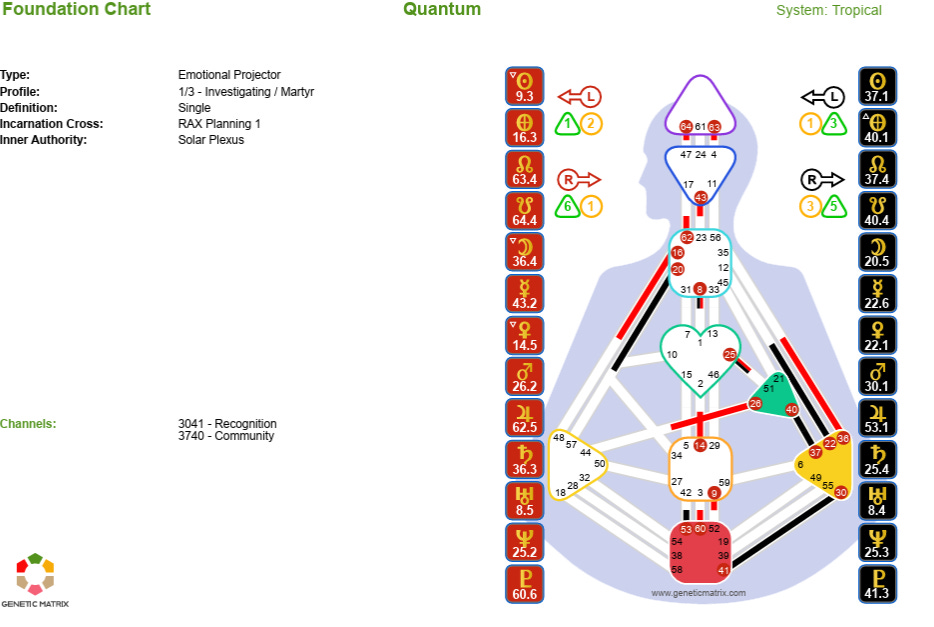 It will also show what kind of the five energetic types you are - in this case, the chart shows an Emotional Projector. This essentially explains how the Projector is designed to make decisions. It’s this particular Projector’s Authority.